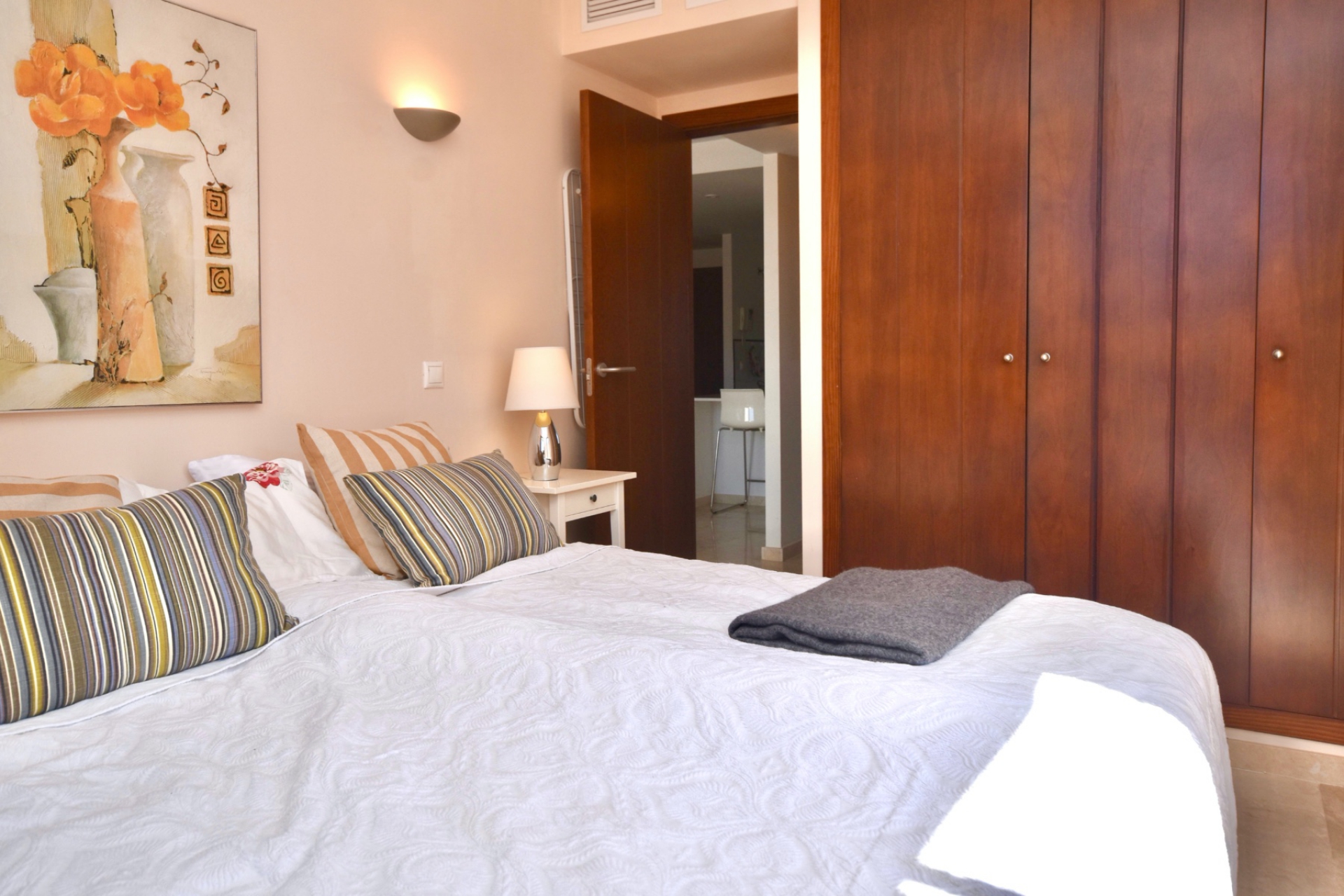 Świetna okazja na sprzedaż, penthouse blisko morza, jedna z najlepszych lokalizacji na Torrevieja Punta Prima. Ten apartament z 2 sypialniami i 1 łazienką znajduje się na ostatnim piętrze w inwestycji Punta Prima, La Recoleta. Znajduje się on zaledwie 300 metrów od Morza Śródziemnego i 400 metrów od plaży Punta Prima. Również centrum handlowe i restauracje Punta Marina znajdują się w bliskiej odległości.Mieszkanie na ostatnim piętrze znajduje się na zamkniętym osiedlu z całodobową ochroną. Wychodzi na jeden z ogrodów, a urbanizacja posiada dwa baseny komunalne. Nieruchomość składa się z małego przedpokoju, który prowadzi do przestronnego salonu i otwartej kuchni. Z salonu można wyjść na południowy taras słoneczny. Sypialnia gościnna ma wbudowane szafy, pomiędzy sypialniami znajduje się spora łazienka. Sypialnia główna ma również zamontowane szafy, ale tutaj można znaleźć tę specyfikę mieszkania, gdy przez przeszklone drzwi można znaleźć duży i słoneczny taras na dachu z widokiem na morze. Nieruchomość posiada garaż podziemny, klimatyzację i jest sprzedawana umeblowana.