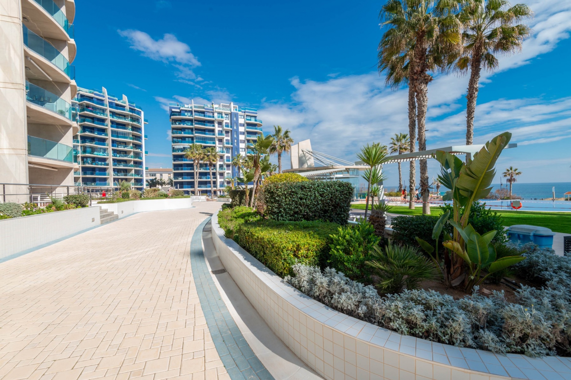 Apartament znajduje się w Punta Prima, zaledwie 400 metrów od popularnej plaży Punta Prima. Mała plaża znajduje się tuż przed budynkiem, więc codziennie możesz cieszyć się porannym kąpielą w morzu. Okolica jest oddalona od hałasu ruchu drogowego, co zapewnia spokojne i relaksujące otoczenie, jednocześnie wszystkie niezbędne usługi znajdują się w pobliżu.