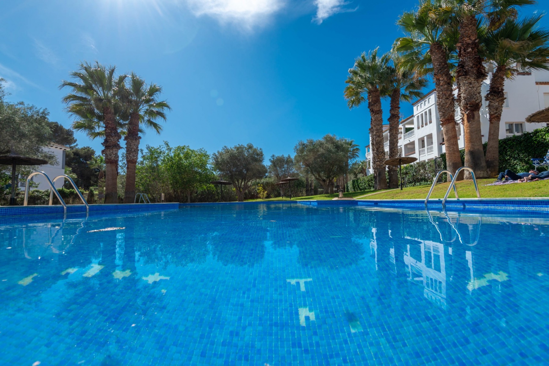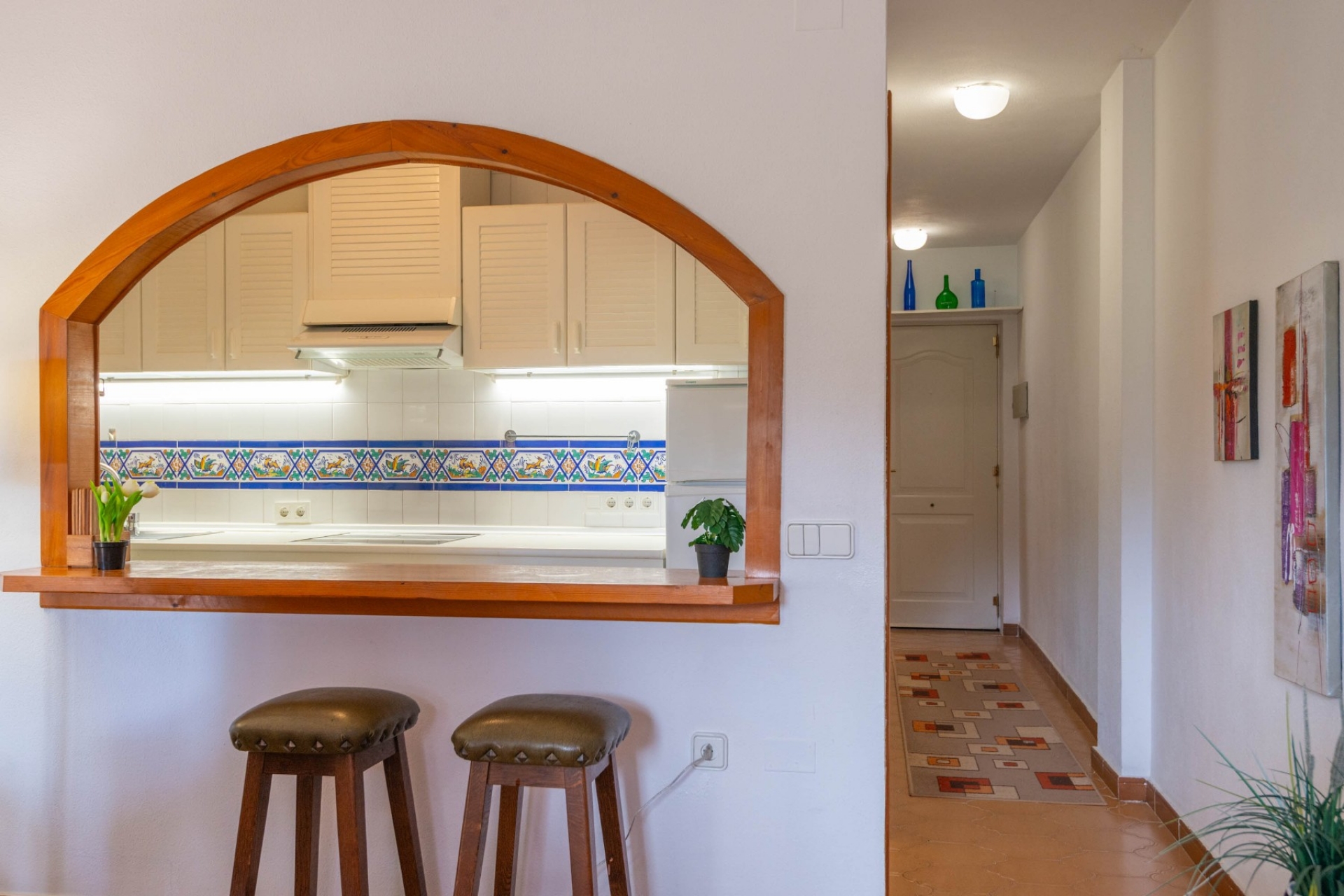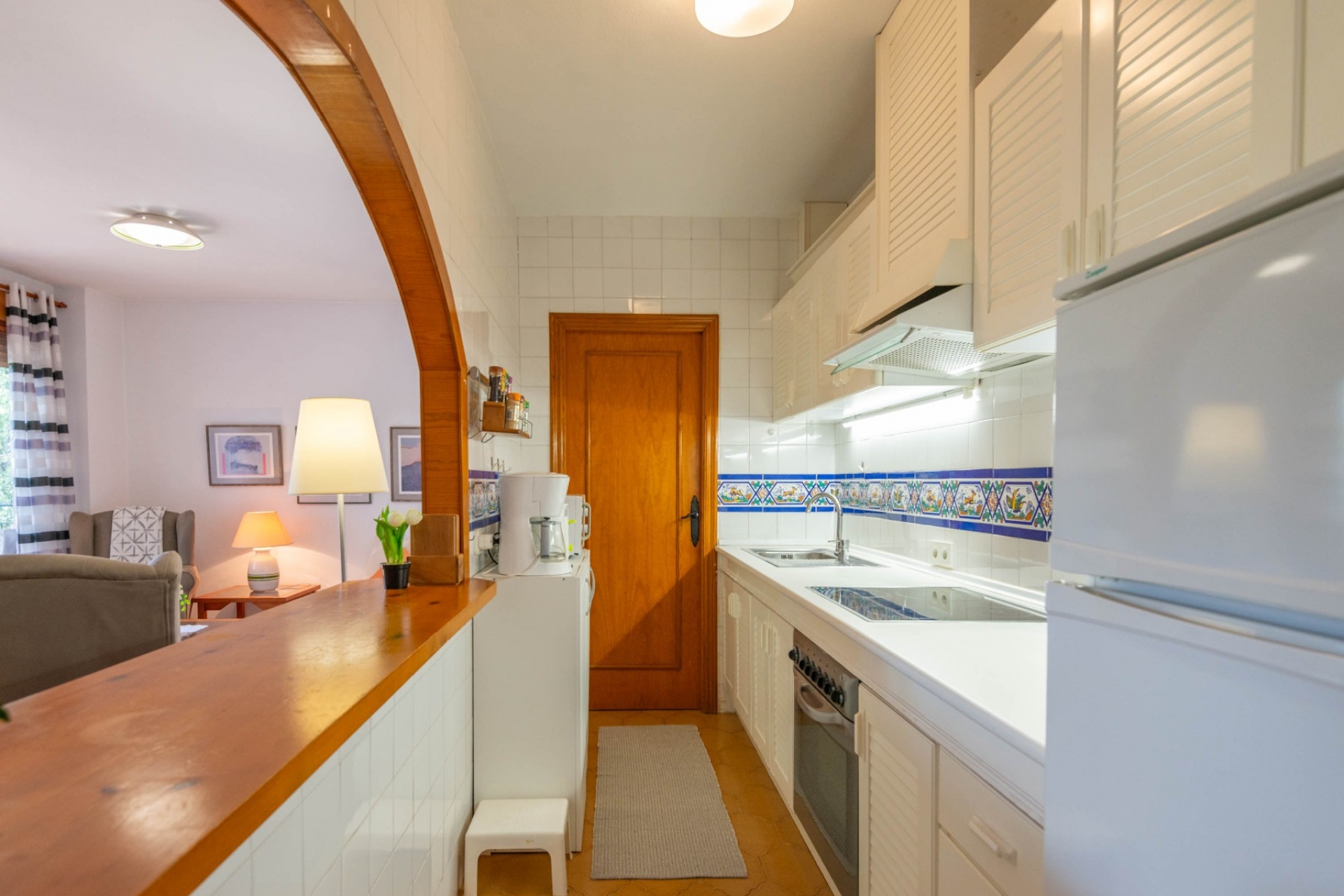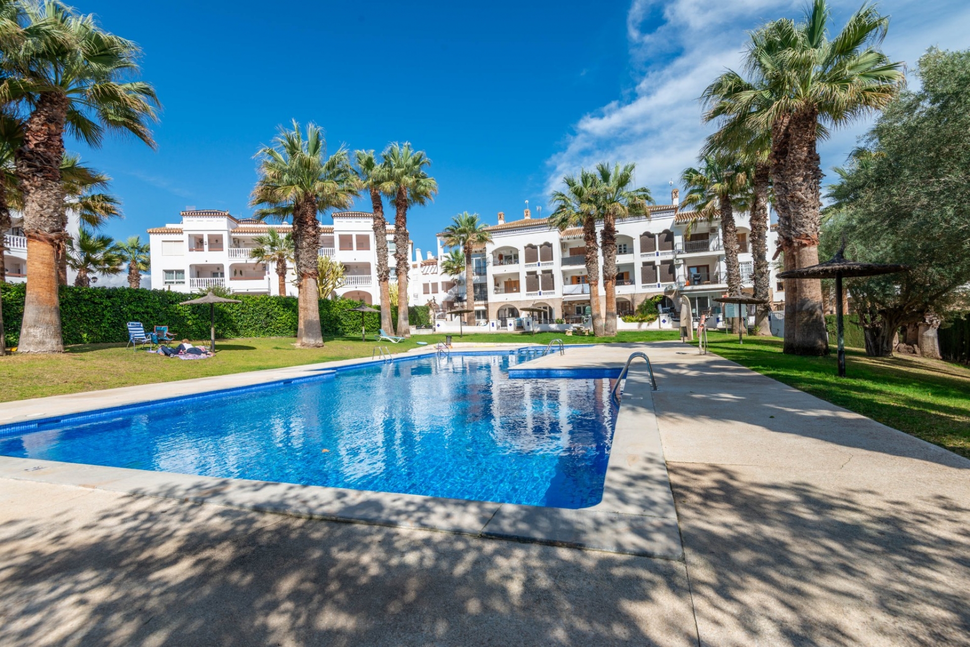 To dobrze utrzymane, umeblowane mieszkanie zostało zbudowane w 1990 roku i znajduje się na drugim piętrze kompleksu, z zachodnią ekspozycją i balkonem oferującym piękne widoki na basen i ogród. Powierzchnia mieszkania wynosi 67 m², w tym balkon o powierzchni 5 m². Otwarta kuchnia jest wyposażona w piekarnik elektryczny, lodówkę i zamrażarkę, a dodatkowo oferuje pralkę, zainstalowaną klimatyzację oraz dostęp do internetu. Wspólnota oferuje wspólny basen dla większego komfortu.