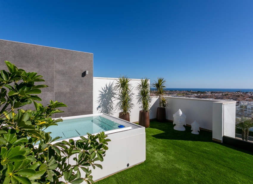 The penthouses and duplex include on their terraces an outdoor kitchen with sink and barbecue, pergola, TV connection, outdoor shower, private jacuzzi, solarium with imitation wood flooring combined with artificial grass. They also integrate a home automation system in the home.