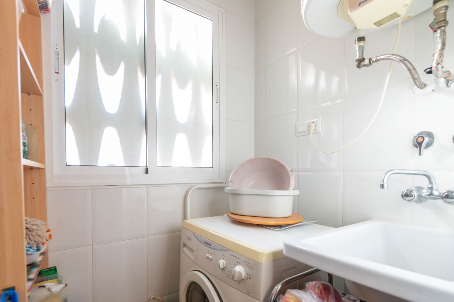 The heart of the apartment is its south-facing glazed balcony with beautiful views over the lush oasis-style pool area. In addition to the balcony, the property boasts a very spacious private roof terrace, where part of the space is covered and enclosed. This makes the terrace extremely versatile—perfect for relaxing, entertaining, or even temporary accommodation. With a southern orientation, you can enjoy sunshine all day long.